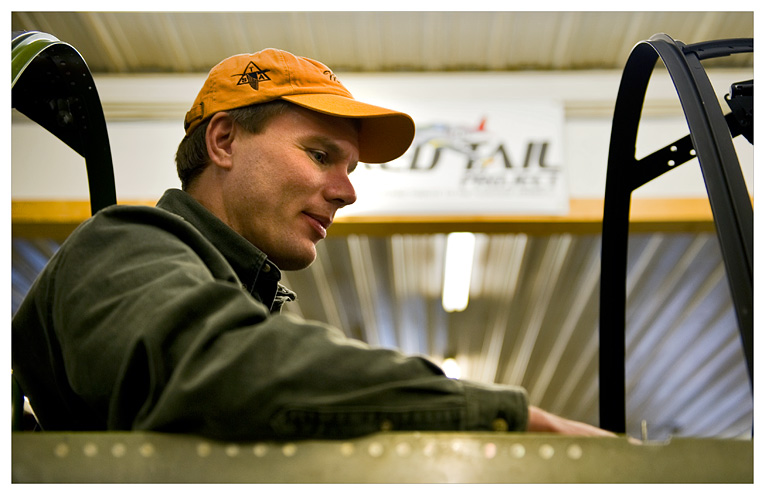 John "Scrounger" Beyl is the Team Leader of the restoration project. That means that if he were getting paid for driving all that way to spend his weekends away from home, he'd get paid the most. But, it's a labor of love, especially for John; he gets airsick in small planes like this one. | ||||||||||||