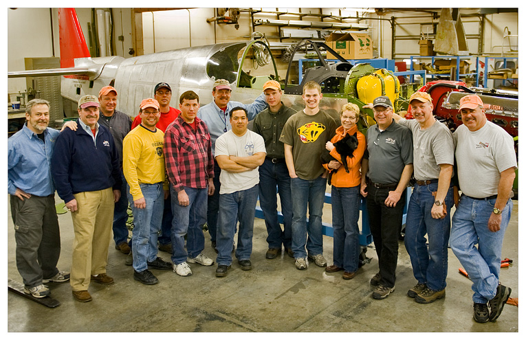 On hand for this pivotal moment in the restoration process, from left to right- Max Haynes, Thumper Barzen, Scoop Darnell, Bubbles Devine, Neil Petik, Guru Tisler, Rosie Rozendaal, Gadget Pena, Scrounger Beyl, Eric Trueblood, Cindy Beck, Happy, Stan Ross, Slick Kaminsen, and Greg Benson.