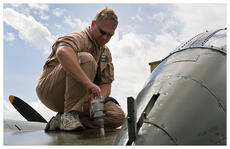 Time to top off the tanks. After the air-to-air session, Rob would be flying the aircraft back to its home base in Granite Falls, MN. Rob is gone just about every weekend during the summer, delighting crowds across the country with this rare bird. This night, at least, he would be able to be back home with his wife.