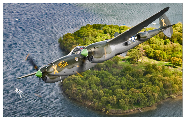 We flew over Lake Minnetonka, one of my favorite backdrops in the Twin Cities area. It's not easy for a P-38 to fly as slow as a T-6, so we were pedaling as fast as we could.