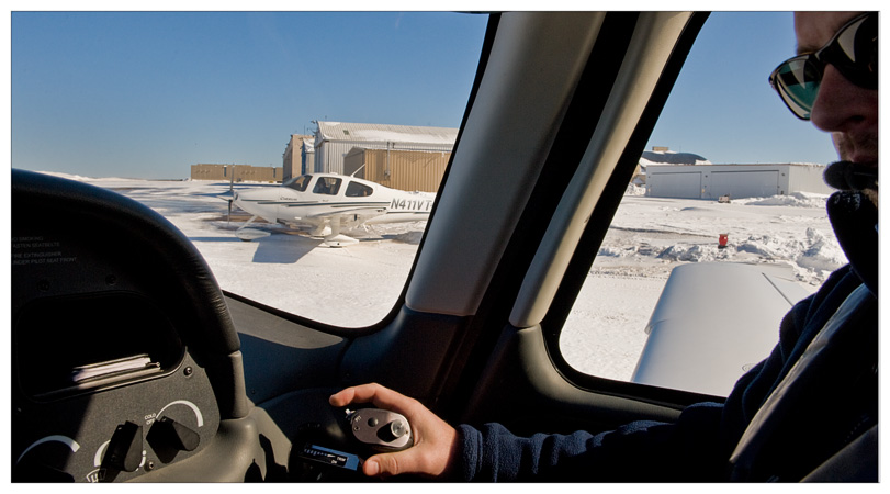 Time to head home. Chris did all the busywork of getting the plane ready to go, because we had business back in Minneapolis. All I had to do was take off, which I managed to do! It helps to have a runway that is 150 feet wide. Landing was even more fun, with 10,162 feet to work with, I had plenty of room to come in a bit high. | |