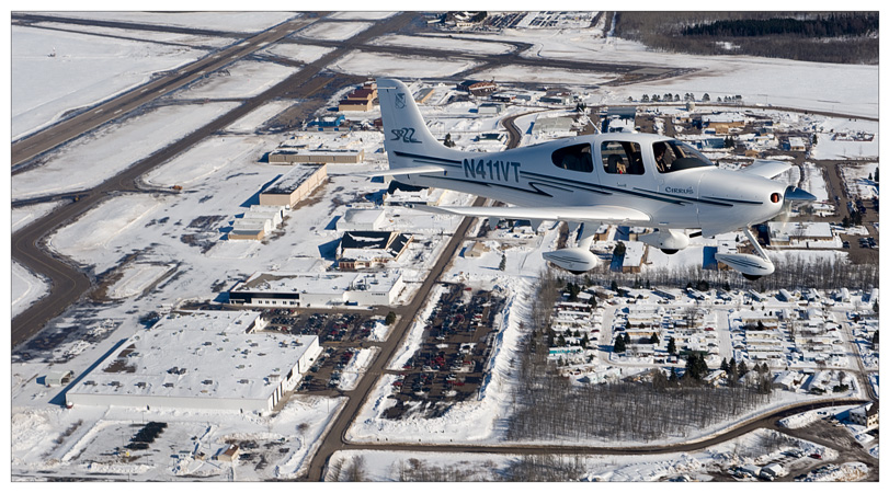 The Cirrus World Headquarters takes up the lower left quadrant of the picture. It looks camouflaged for winter.