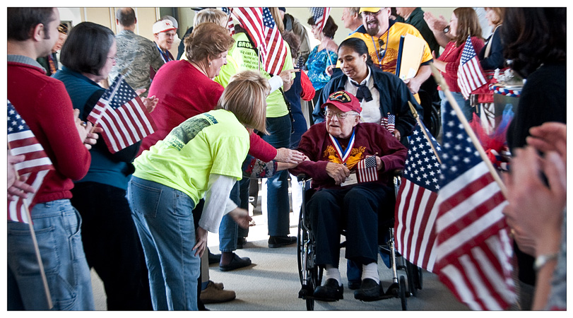 When the Vets came off the plane, a whole crowd of folks were there to greet them and welcome them to DC.