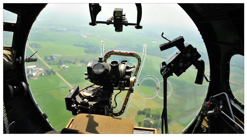 I crawled up in the nose to witness the view of the bombardier. It was really spectacular, as long as somebody wasn't shooting at you or sending exploding shells your way. I don't know how thick that plexiglas was, but it wasn't thick enough.