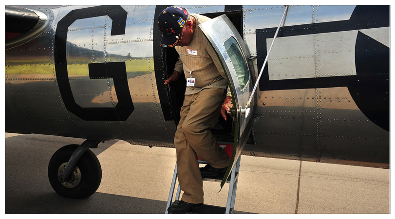 At 91, he is still spry enough to make a graceful exit of the aircraft.