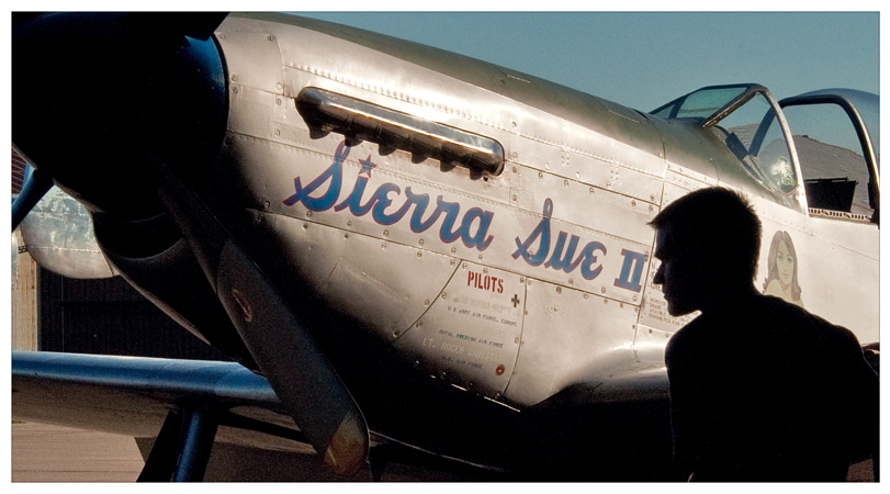 But the plane is in good hands. Eric Trueblood is silhoutted as he prepares for the presentation. He's part of Aircorps Aviation, the award-winning team who will be restoring the aircraft to its WWII configuration. They will be taking a plane that is in good shape and making it darn near perfect. | |||||