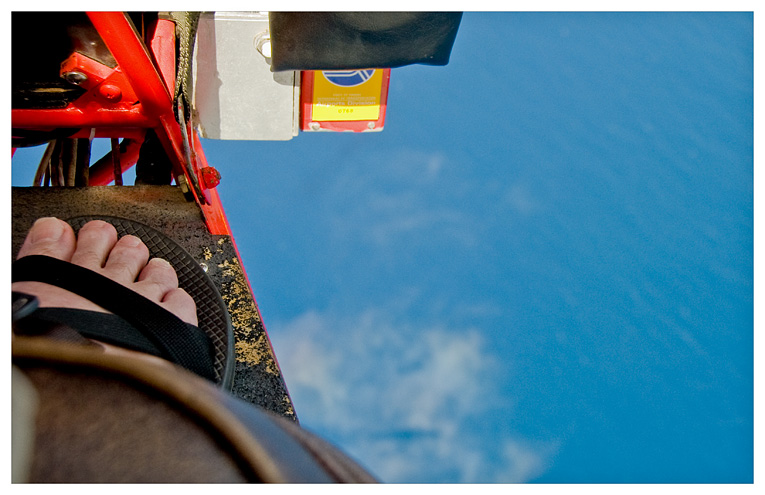 | "Look Max! You can see our shadow on that cloud down there!" What's with all the looking down! I'm surprised my toes aren't curled. But, that might effect the aerodynamics of the plane, causing me to suddenly be thrown from my tiny seat. I will not curl my toes. Is it all right if I pucker? | |