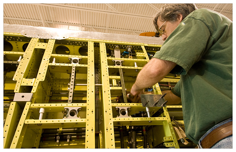 Tom Oostdik is busy doing the meticulous work of putting everything back in the mid section.