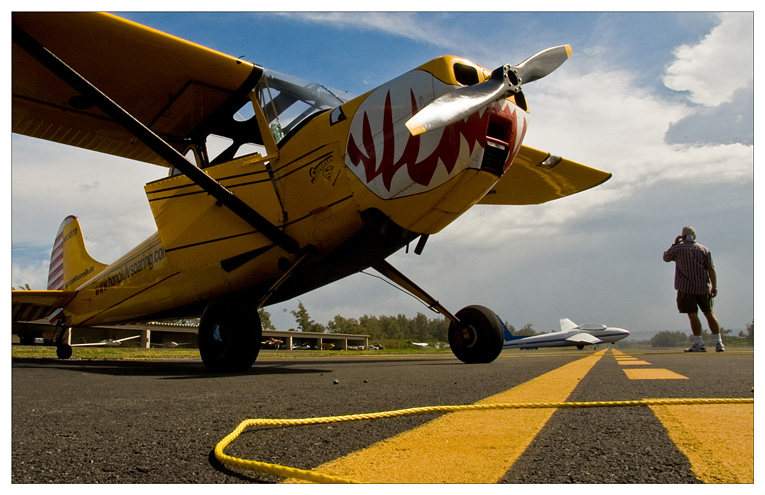 | Busy indeed, when the pilots aren't flying, they're on the phone, lining up their next customer. This is part 2 of a three part series. Part 1. was on my ride in a Breezy, to capture the Cessna and the glider together. This second part was decidedly less frightening. I felt secure in the Ector, it's a great little airplane, perfect for the job. The third part will be about the sailplane. | ||||||||||||