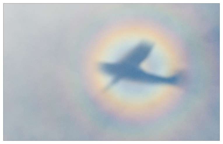 Well, this is the Rainbow State. There are a few names for this, a flyer's halo, a glory, brocken spectre. But whatever you call it, it's cool!