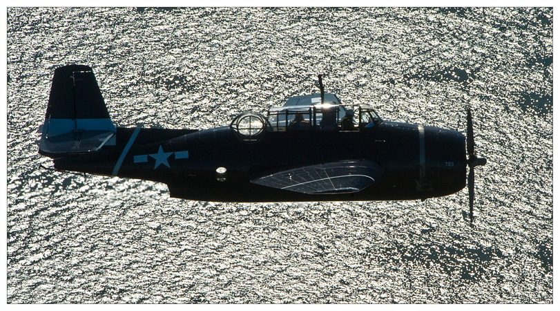 | Brad (cameraship pilot, Tim Barzen) gave me the opportunity to do this air-to-air mission after the airshow was over for the day. We headed out over Lake Waconia, MN. I thought it fitting to have water as the background for this Marine aircraft. It likely saw combat during its brief exposure, near the end of WW2. | |